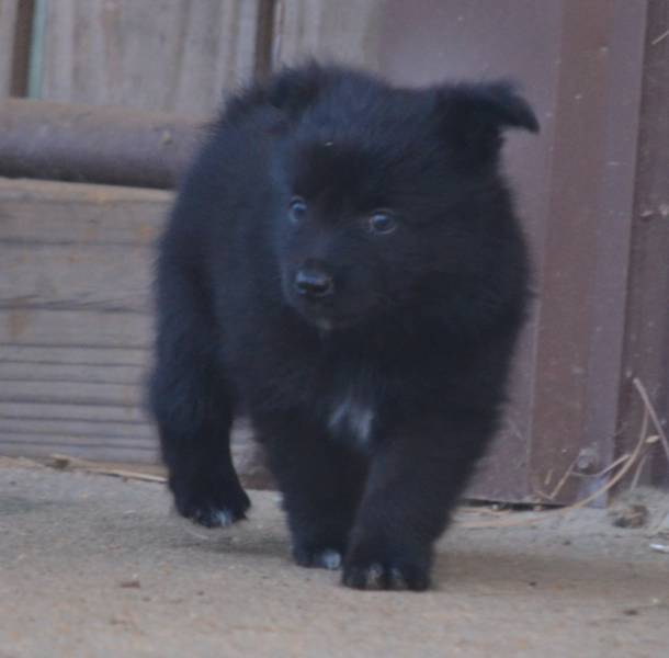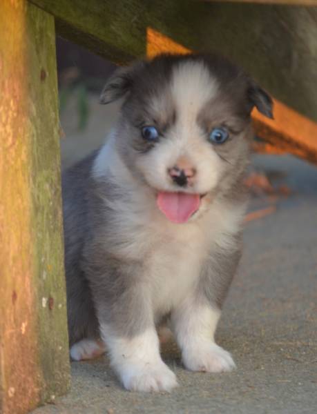 This boy is very minimal white markings with a few white toes and a very small patch of white on his chest. He has no copper points. I think his eyes are going to be marbled (turn brown with blue in them). This is the only boy in the litter and the first puppy to greet you every morning. If he was a she, then he would not be for sale.